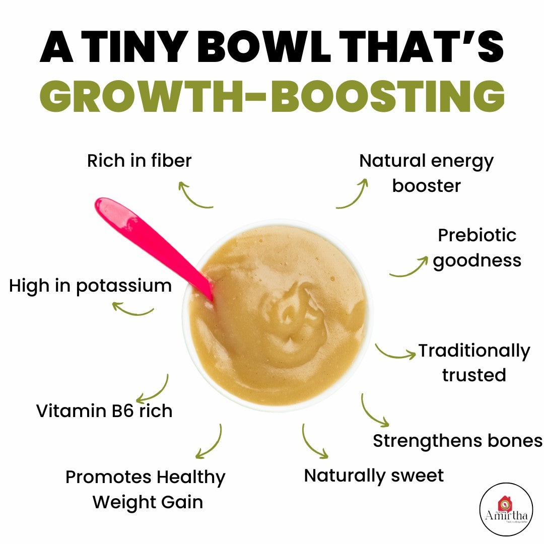 Kerala Nendran Raw Banana Mix - Give your little one a wholesome start with Raw Nendran Banana Porridge Mix—perfect for babies above 6 months. This easily digestible superfood supports healthy weight gain, immunity, gut health, and brain development. 100% natural with no sugar, salt, maida, milk solids, or preservatives.
