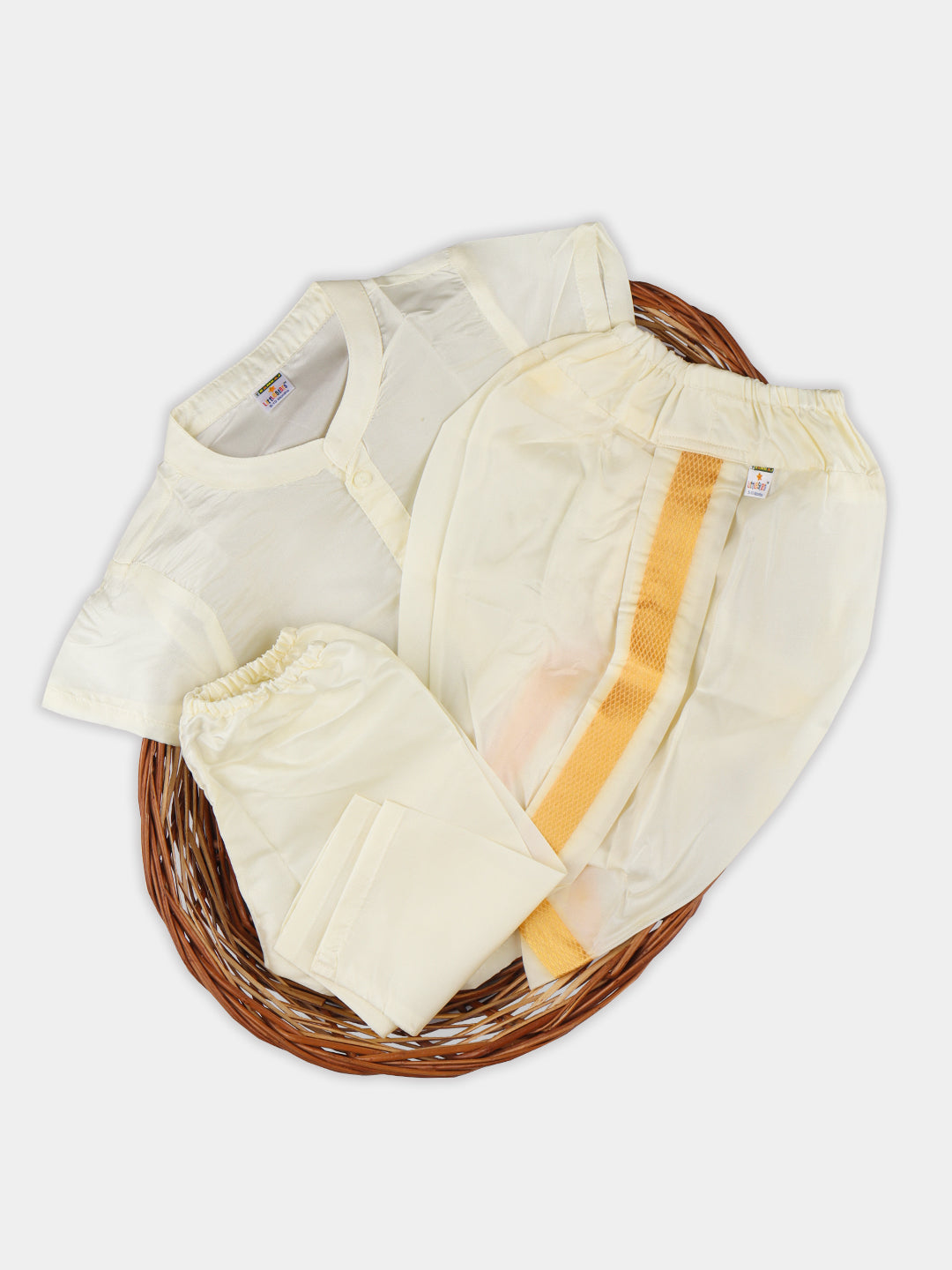 Born Baby Silk Shirt Set (Newborn Baby Traditional Set Cream) - Ramraj Cotton