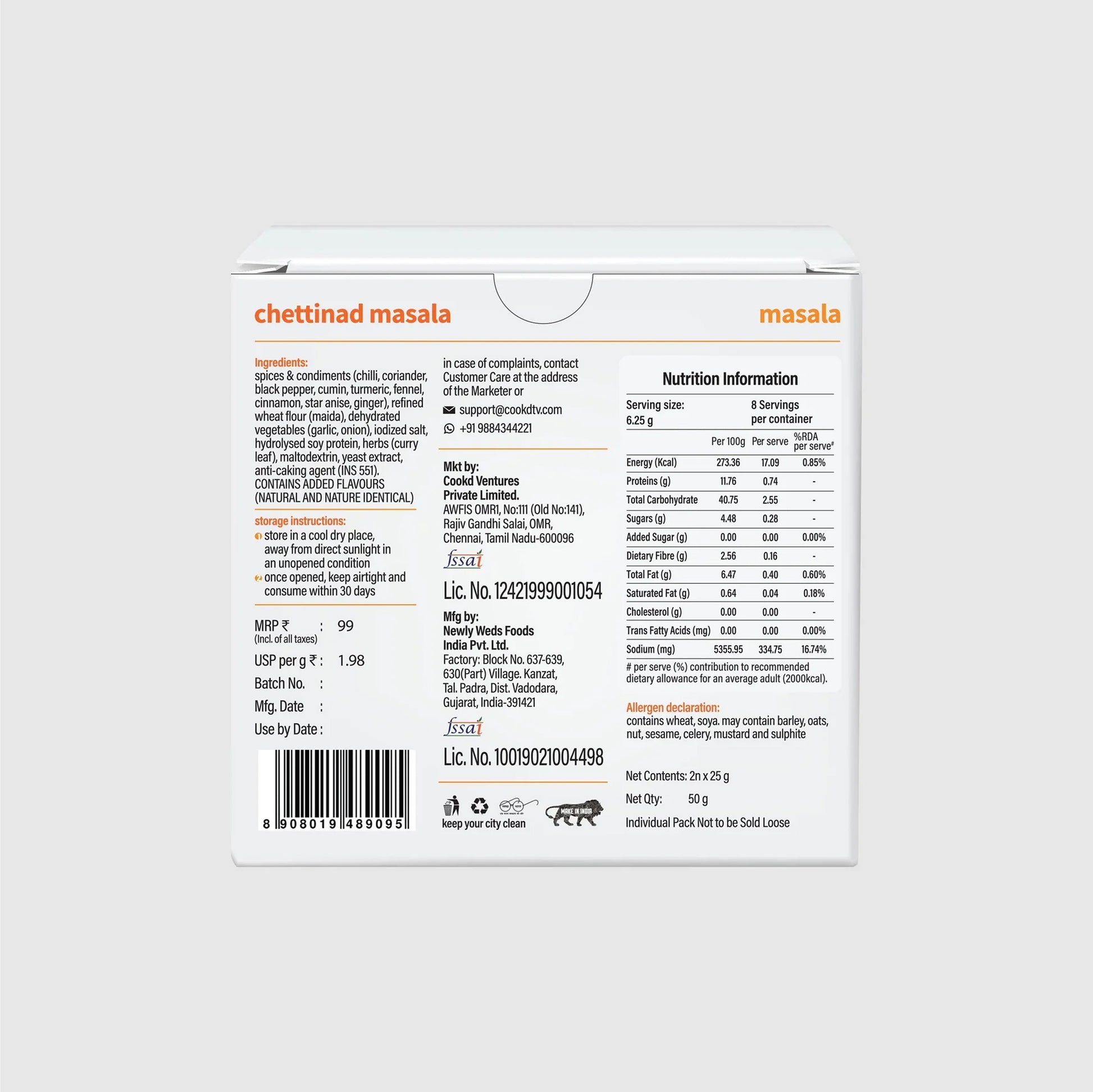 Chettinad Masala - Experience the rich, age-old flavours of Tamil Nadu with this Chettinad Gravy Masala. Crafted over generations, this 50g pack (2×25g) serves 8 people and cooks in just 15 minutes. A perfectly balanced spice blend that adds depth, aroma, and unmatched richness to any gravy.