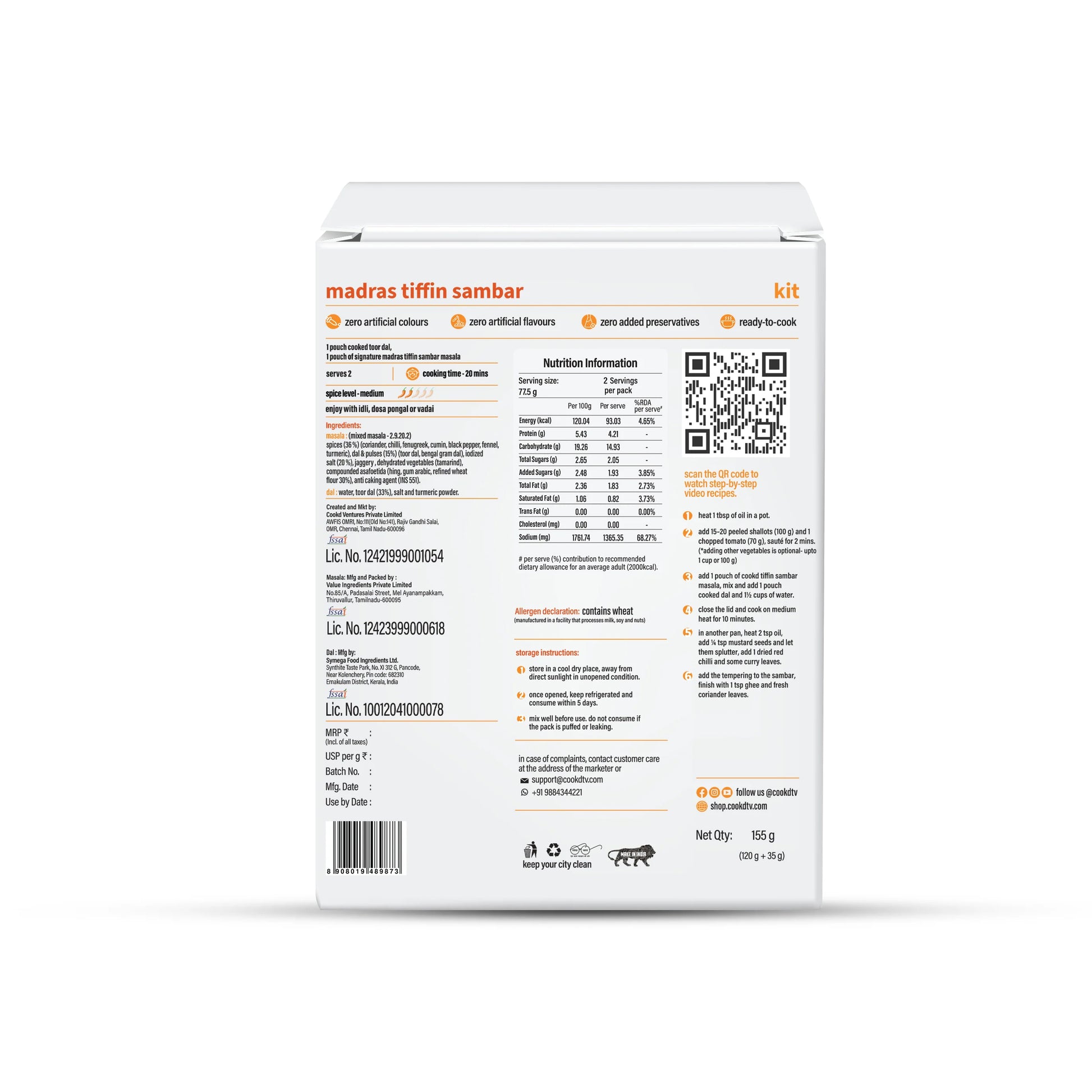 Kit (Masala with Dal) includes: