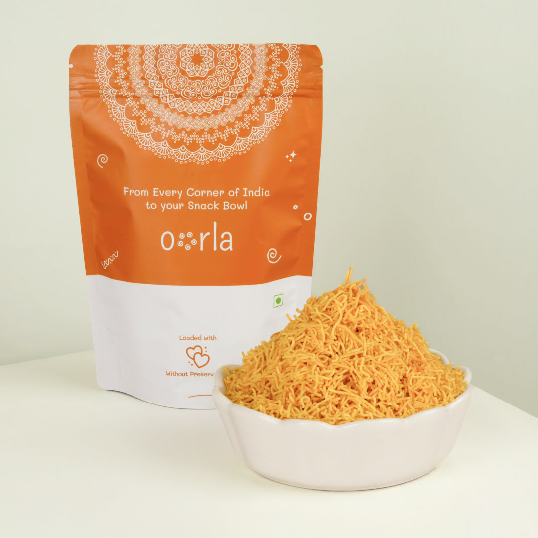 Oorla’s Omapodi is a light, crispy South Indian snack made from Bengal gram flour and foxtail millet flour, infused with the earthy aroma of omam (ajwain). Perfect for tea time, festive spreads, or a crunchy topping for chaats and curries — this plain bhujia is anything but ordinary. Traditional, aromatic, and absolutely addictive!