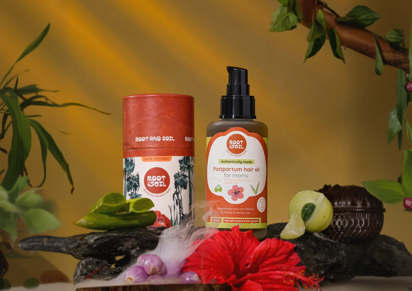 Root and Soil’s Postpartum Hair Oil for Moms is a slow-infused herbal blend crafted to address hair fall, thinning, and scalp imbalance after pregnancy. With bhringraj, castor oil, hibiscus, amla, kalonji, henna, aloe vera, and country onions, it nourishes roots, restores density, and supports healthier hair growth. A gentle weekly ritual for renewed strength and confidence. Available on IndiThings.