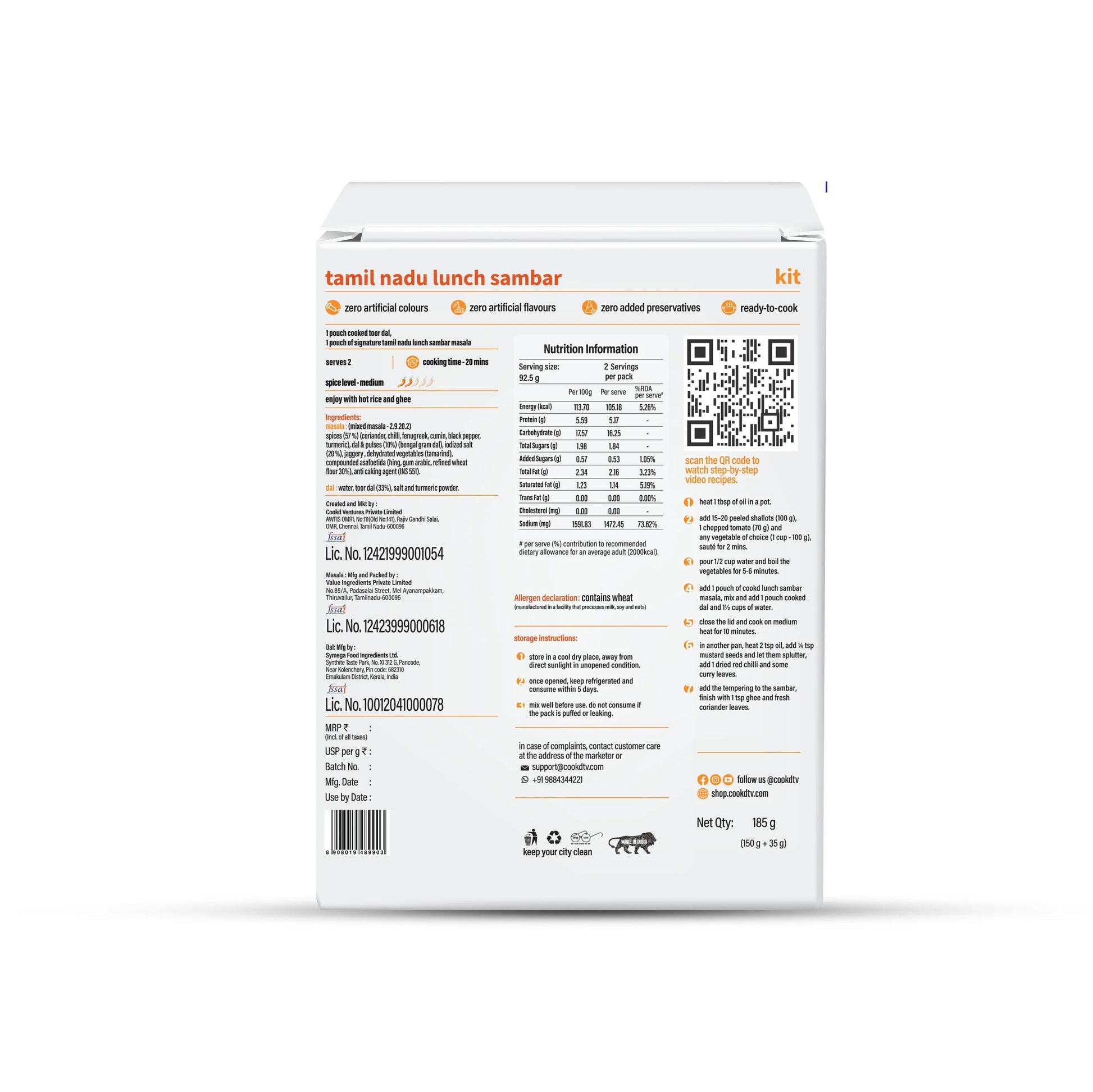 Kit (Masala with Dal) includes: